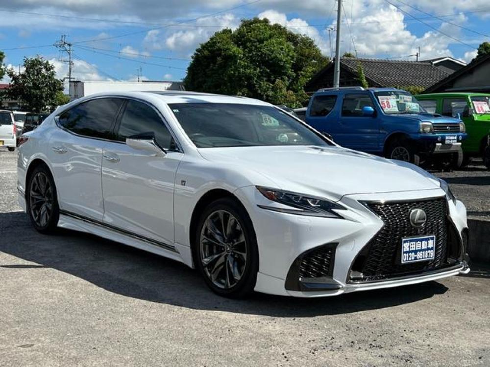 宮田自動車 - トップページ > レクサスLSLS500 Fスポーツ TRD F・S・Rエアロ TRDスポーツマフラー エイムゲイン ルーフスポイラー マークレビンソン サンルーフ デジタルインナーミラー 全方位モニター ETC車載器 ドライブレコーダー 赤革シート
